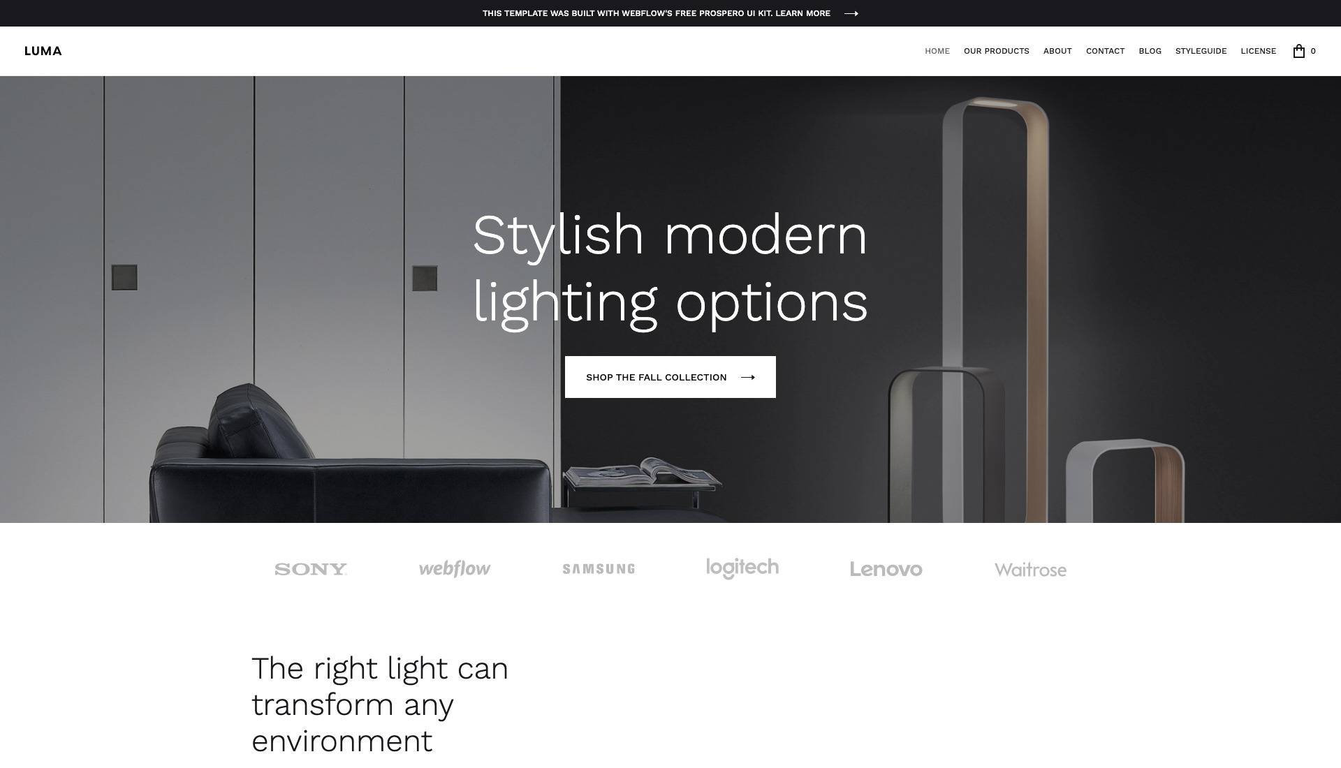 Luma is the perfect choice if you’re looking for a free Webflow template that has all of the important elements that an ideal Webflow showcase site should. The template is made for the retail industry and can be customized according to your needs.
