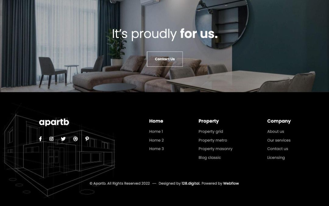 Apartb 128 Real Estate template is also built with Webflow, a powerful web design platform. This means that you can easily create a professional-looking website without any coding knowledge.